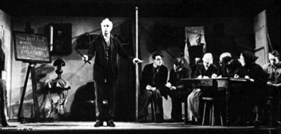 بەیانیەکەی دیکە ستۆڵۆرس بە پەلە دەچێتە سەر کارەکەی، سەری بە شێوەیەکی کۆمیدی بەرزکردۆتەوە و نیگایەکی زیاد لە پێویست لە خۆڕازیبوون لە دەموچاویدایە. لە تراکی دەنگیدا گوێمان لە گۆرانی ‘پیاوی بەختەوەری ئیمێرسۆن و لەیک و پاڵمەر دەبێت کە هاوکارەکانی بە پێنجی بەرز لە هەموو دەوروبەریدا پیرۆزبایی لێدەکەن. بەڵام هەموو ئەم ئاهەنگە زۆرسادە و بەڕواڵەت زۆر باشە بۆ ئەوەی ڕاست بێت، بە زوویی تێکدەچێت، وەک لە خوارەوە دەیبینین. ئەمە هەمووی بەشێکە لە ‘دانانی نمایشێکی لی، کە لە هەمان کاتدا تایبەتمەندییەکی تایبەتمەندی شانۆی ئیپیکییە..[40]